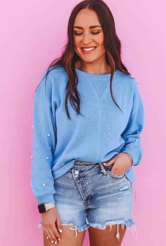 Pearl Sleeve Crewneck (Blue) *expected 2/1*