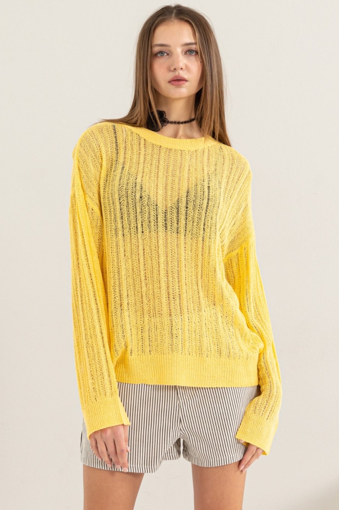 Discover the ultimate staple for your wardrobe with The Aly Top. This versatile top, reminiscent of the popular Brad top, is perfect for everyday wear and special occasions. Its vibrant colors and chic bell sleeves are accentuated by a mesh design, making it a must-have for any fashion-forward individual. Choose from sizes small (2-6), medium (8-10), or large (12-14).